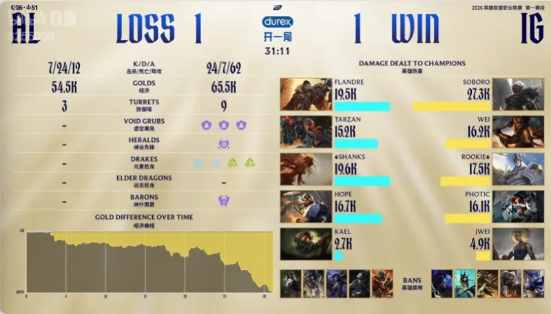 开云官网-IG 1-1 AL:军旗落地链刃索敌,IG团战阵容强势扳回一城